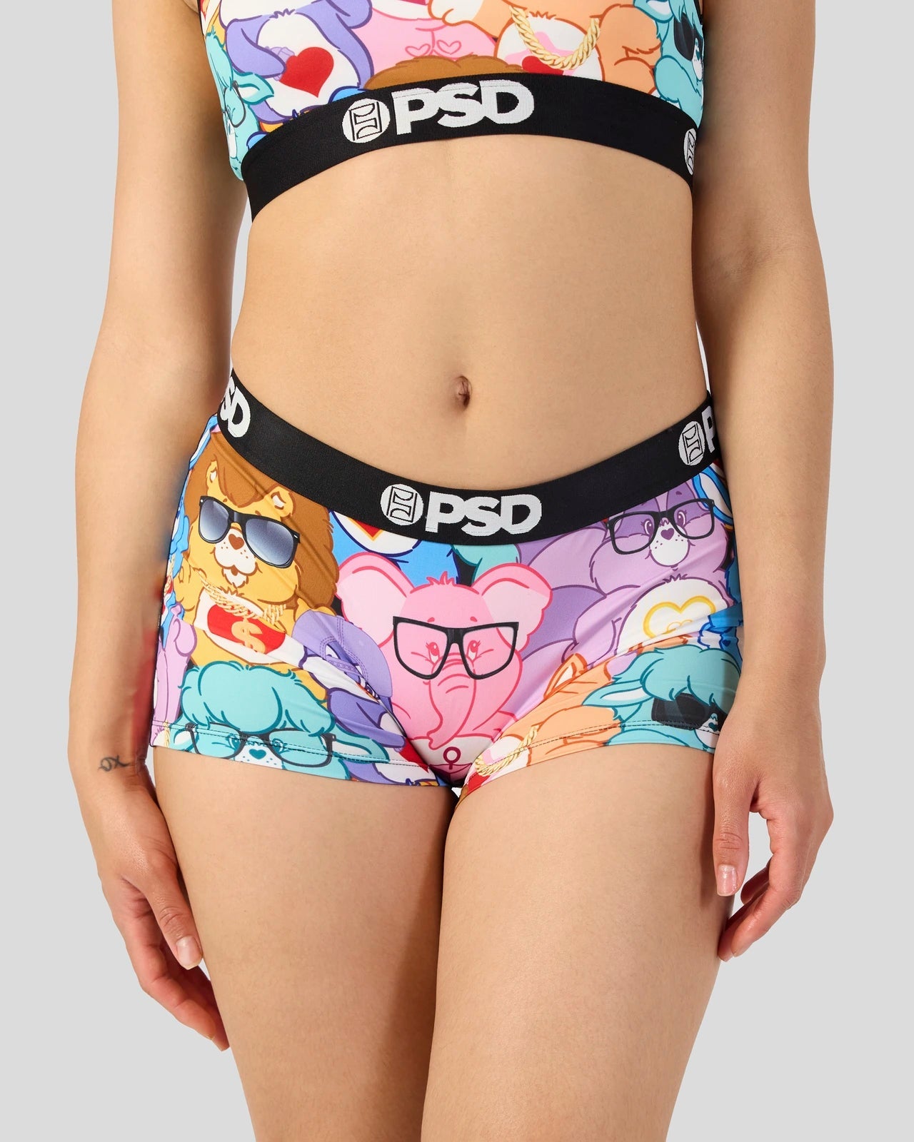 The gang’s all here in this new print from Care Bears x PSD. The Care Bear Homies Boy Short is made from a silky poly blend with a comfortable full coverage. keep-you-in fit. The PSD boy shorts are perfect for everyday wear and working out.