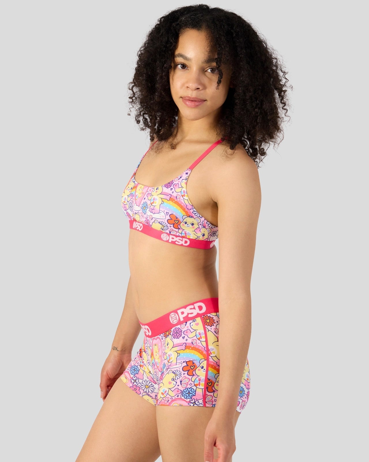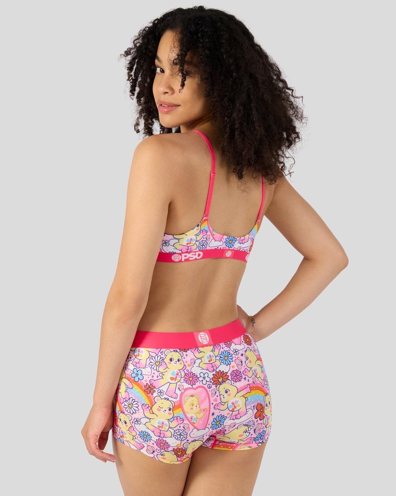 Show yourself some love and grab this new drop from Care Bears x PSD. The Self-Care Bear Boy Short is made from a silky poly blend with a comfortable full coverage. keep-you-in fit. The PSD boy shorts are perfect for everyday wear and working out.