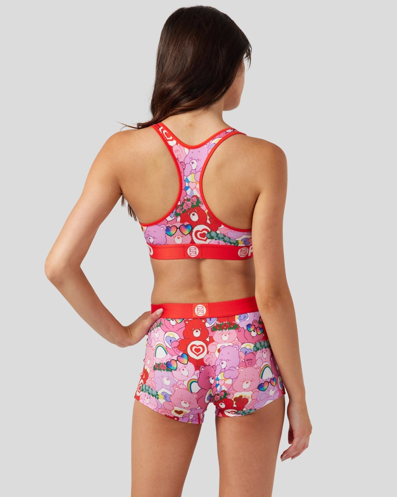 Feel the love with this brand-new style from Care Bears x PSD. the XOXO Boy Short. Featuring your favorite Care Bear characters in a love-inspired print. this is the perfect Valentine’s Day pair. Made of our silky poly blend with a comfortable full coverage. keep-you-in fit. the PSD boyshorts are perfect for everyday wear and working out.