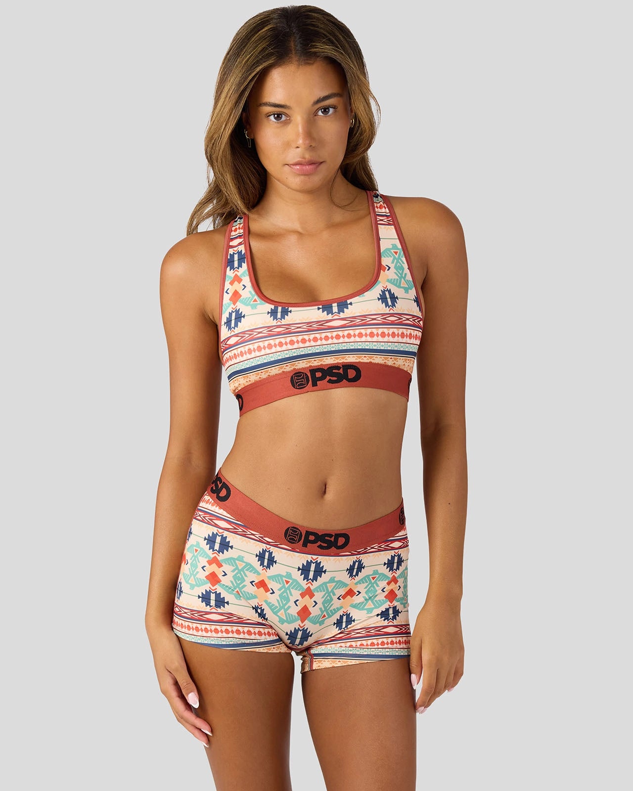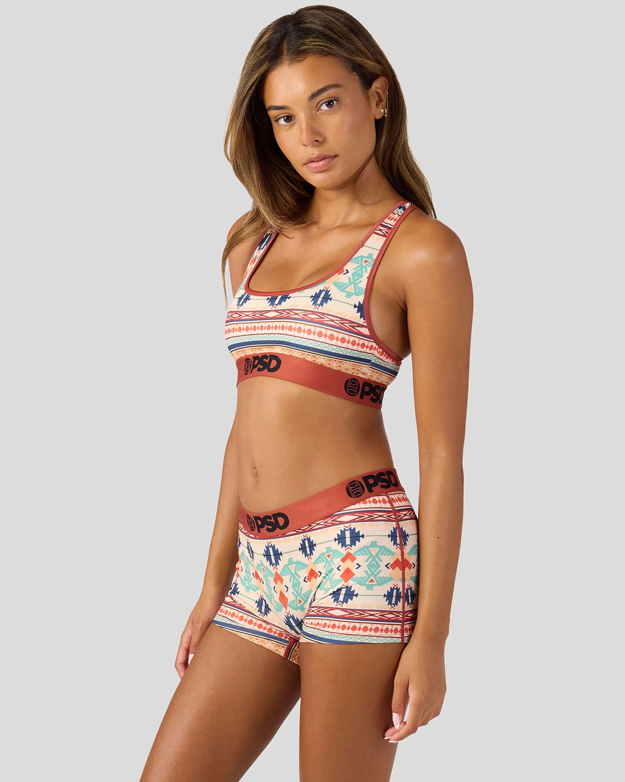 Drawn from one of their Southwestern-inspired prints. the Thunderbird Sports Bra from Hooey x PSD is made from a silky poly-blend that’s breathable yet slightly compressive. bringing you the comfort and support you need for everything you get into.