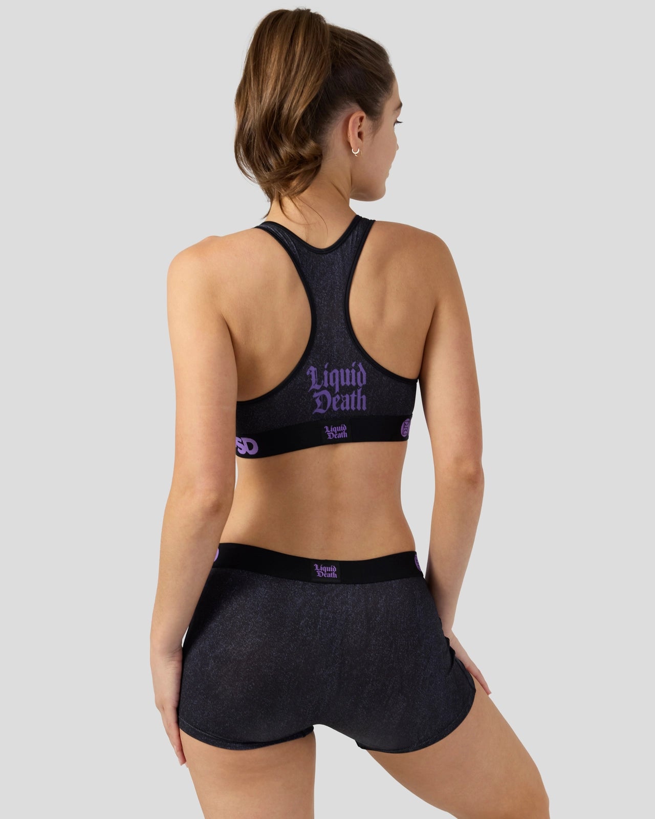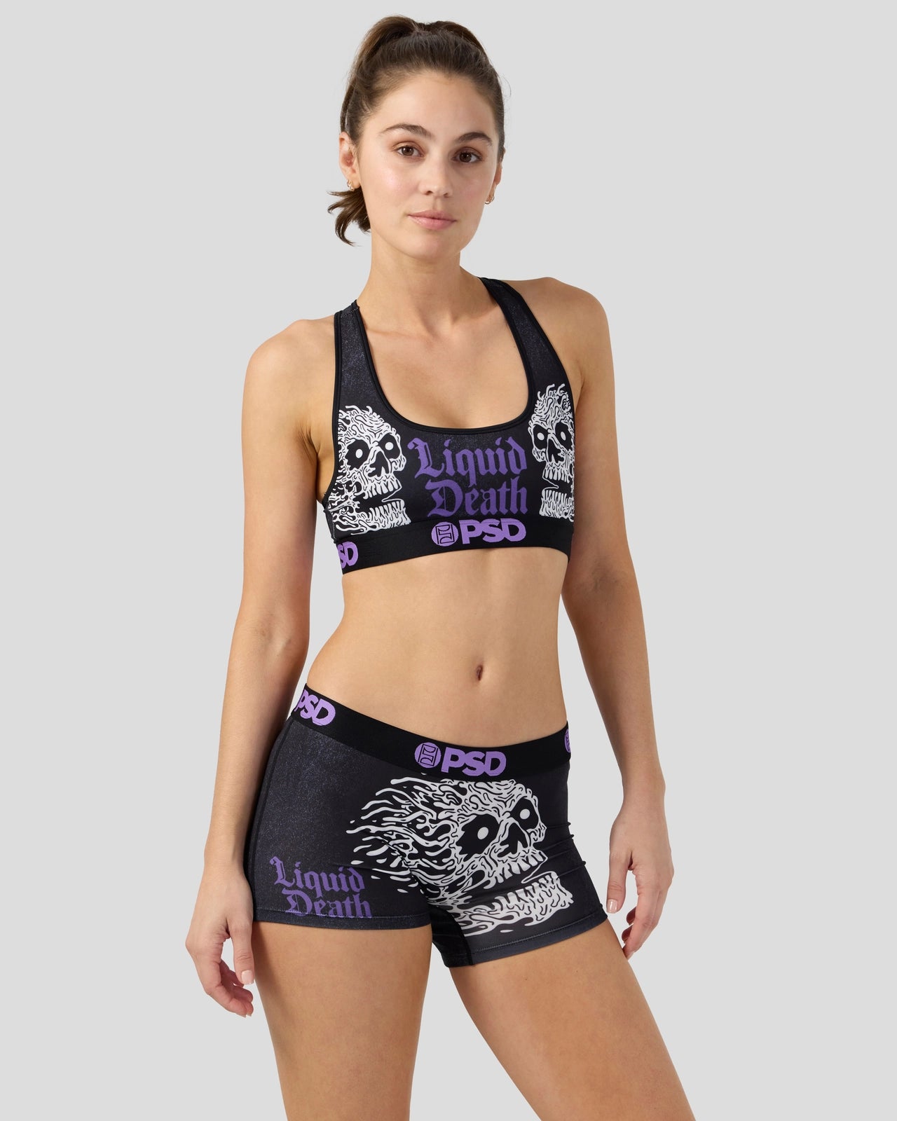 From Liquid Death x PSD. this new drop is face-melting good. The Liquid Death Boy Short is made from a silky poly blend with a comfortable full coverage. keep-you-in fit. The PSD boy shorts are perfect for everyday wear and working out.