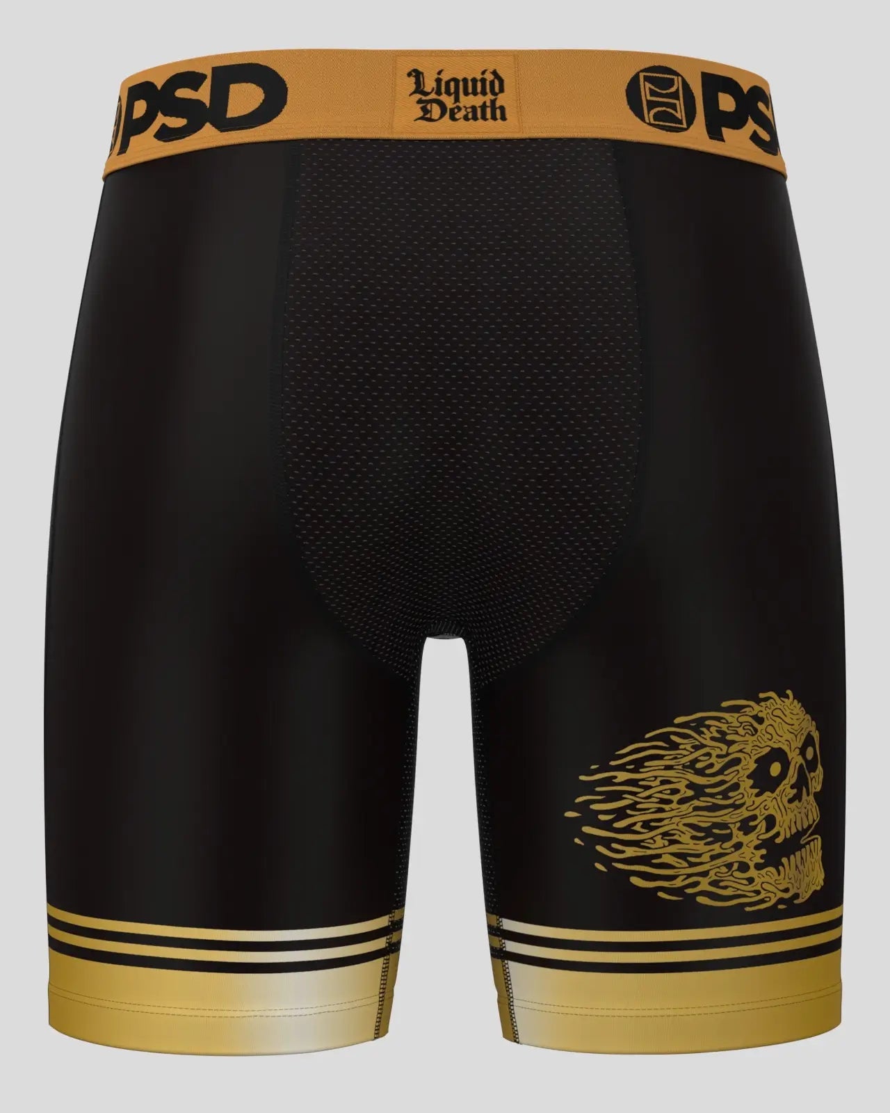 Liquid Death x PSD is here! Featuring our favorite canned water’s iconic logo. the Liquid Death Black briefs include four-way stretch. a breathable MicroMesh pouch. and durable flatlock stitching. The PSD 7 Standard Length briefs were built to hold up for everything from everyday wear to the toughest workouts.