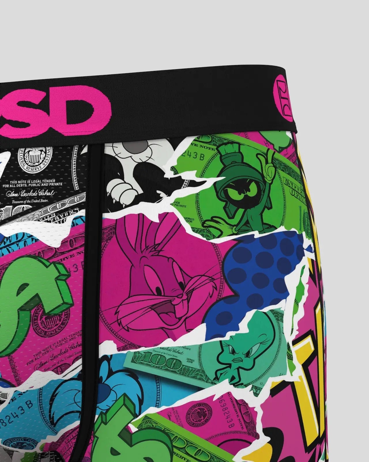Get your Bugs bag with this new money-themed look from Looney Tunes x PSD. The Looney Money briefs include our ultra-comfortable Signature WaistBand. a breathable MicroMesh pouch. and four-way stretch. The PSD 7 Standard Length Briefs won’t roll or ride and were built for everything. from everyday wear to your toughest workouts.