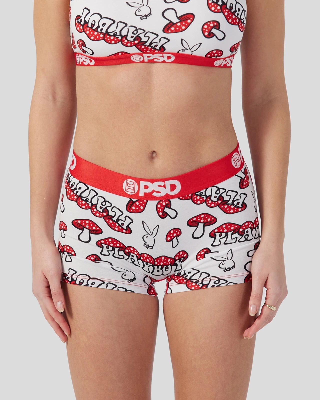 Meet the latest from Playboy x PSD. The Mushroom Boy Short is made from a silky poly blend with a comfortable full coverage. keep-you-in fit. The PSD boy shorts are perfect for everyday wear and working out.