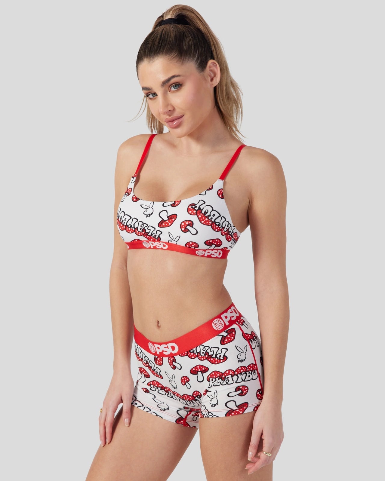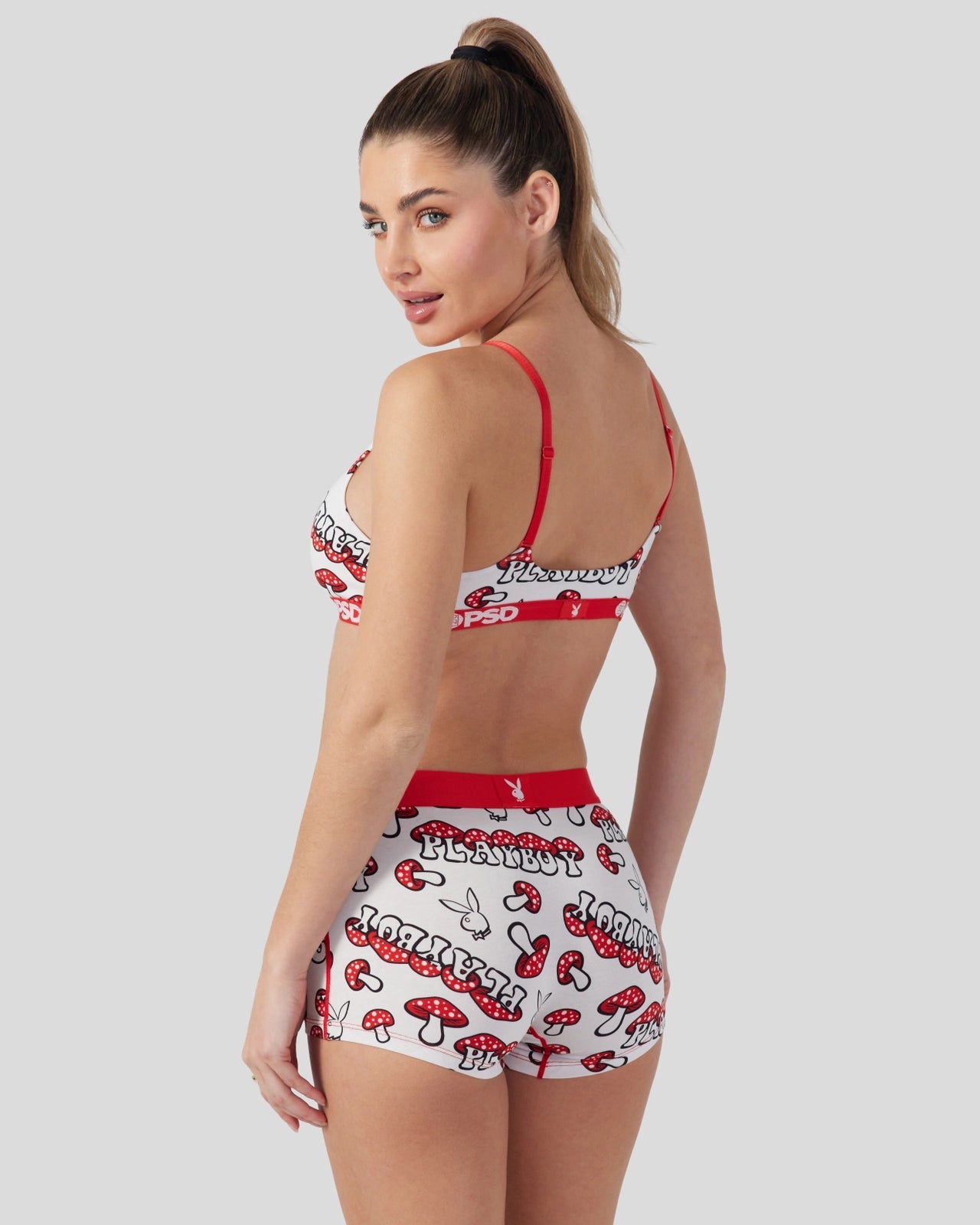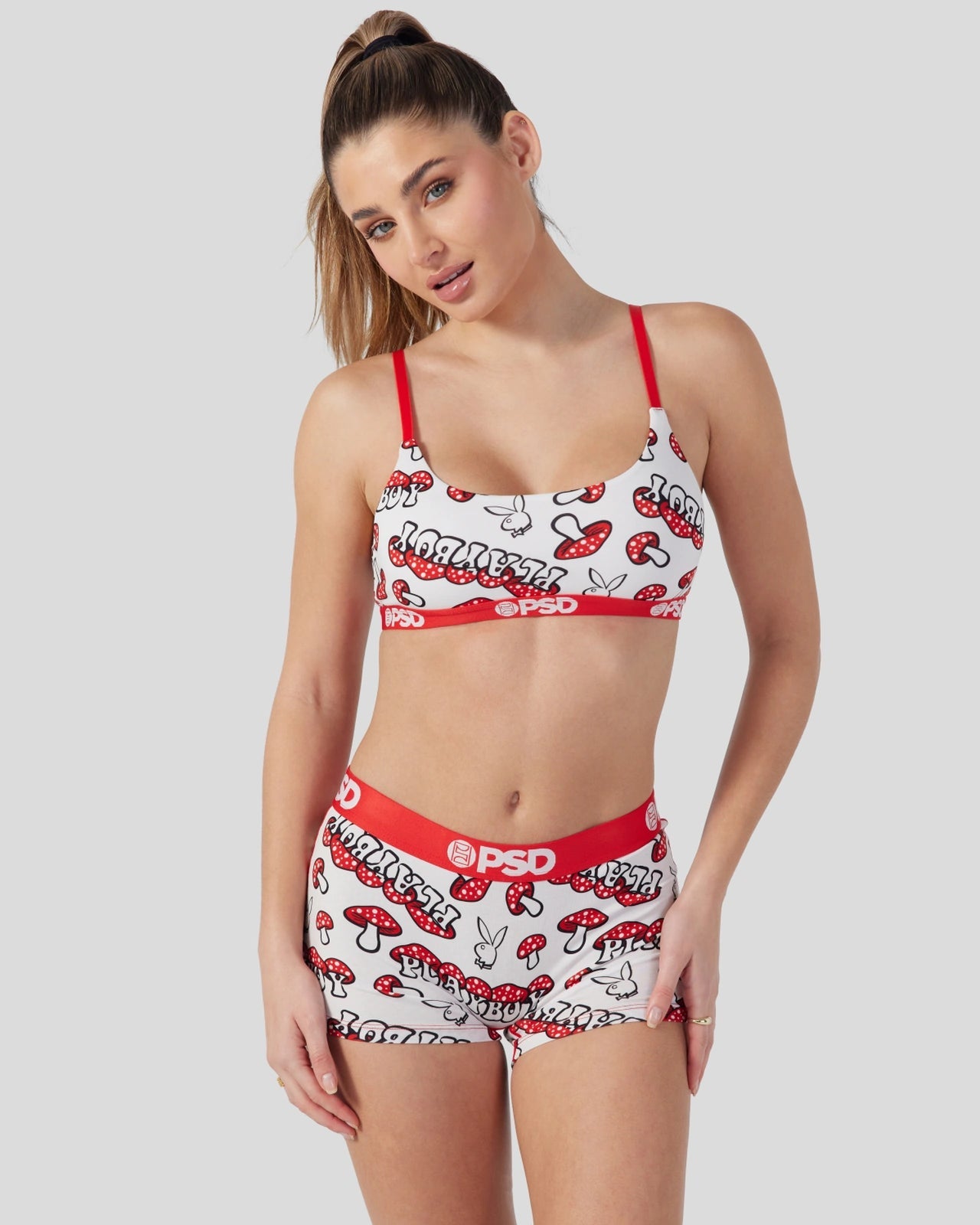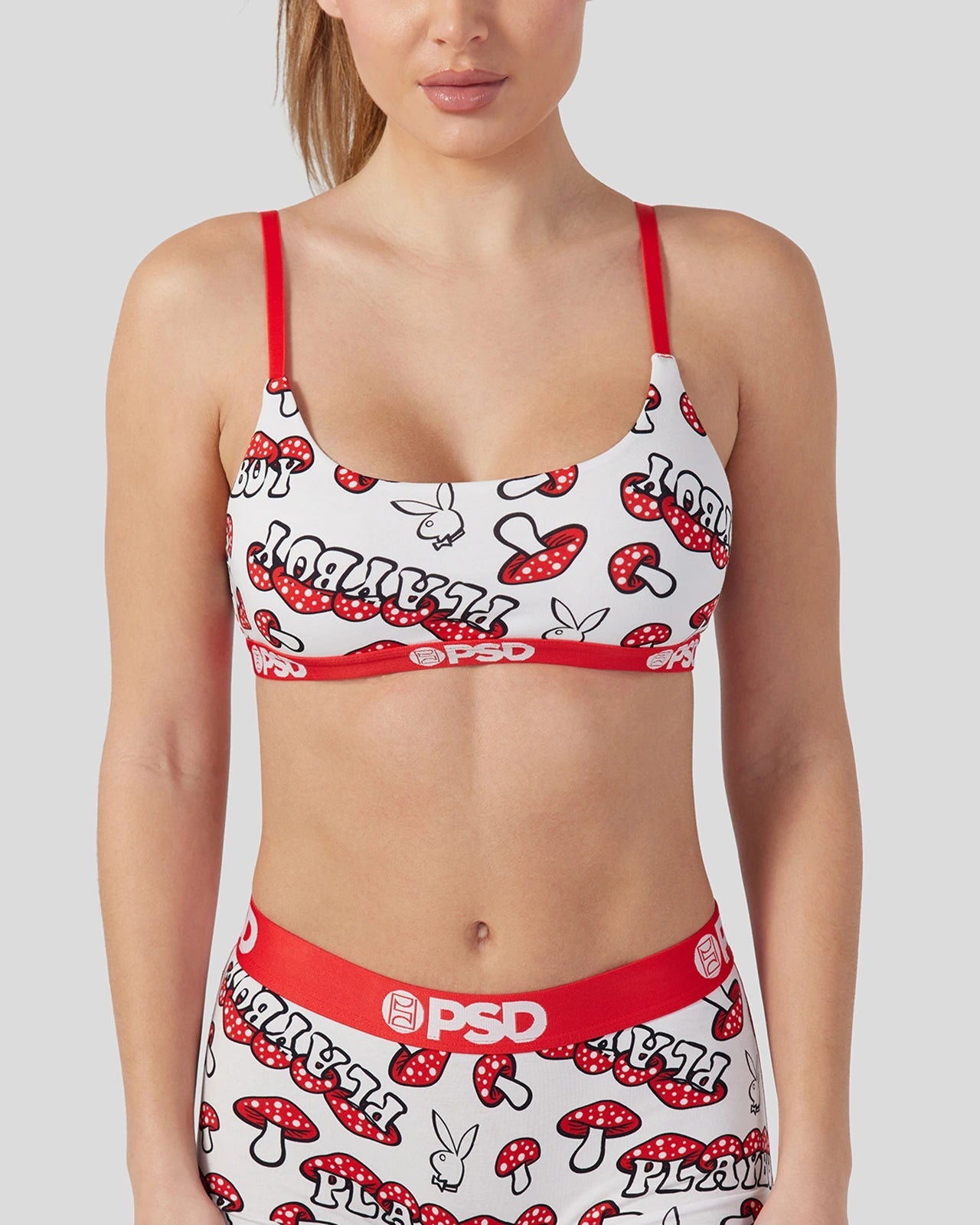 Meet the latest from Playboy x PSD. Made of our silky poly blend. the PSD Mushroom Scoop Bralette almost feels like you’re not wearing a bra at all. It’s fully lined and features include adjustable straps. a cute scoop neckline. and a soft microfiber band that won’t ride or rub.