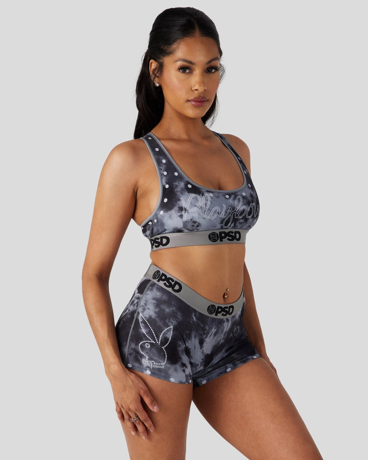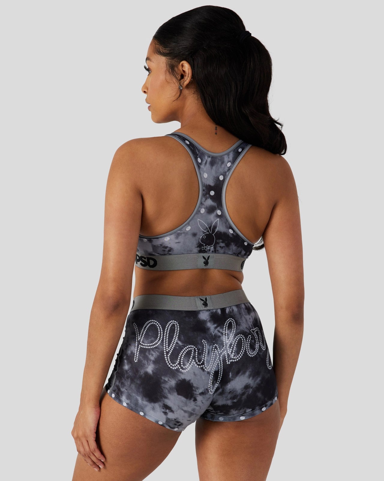 Introducing the latest from the Playboy x PSD collection. With a 2000s-era rhinestone print. this bra will have you missing your velour tracksuit. The Women’s Icy Bunny Sports Bra is made from a silky poly blend and is breathable yet slightly compressive. bringing you the comfort and support you need for everything you get into.