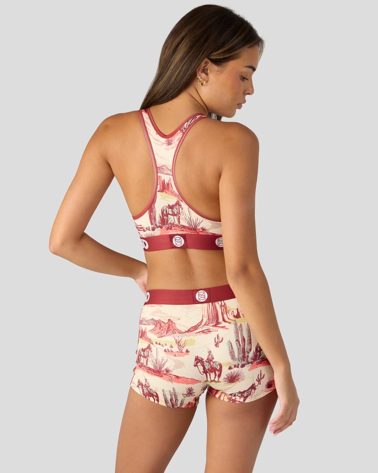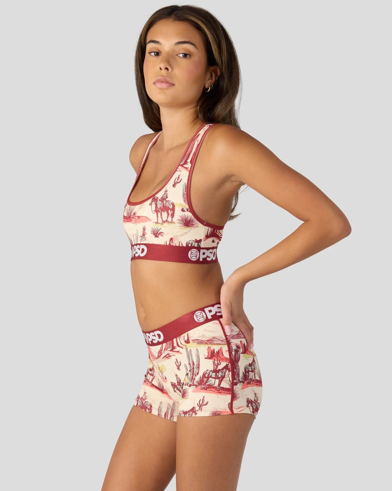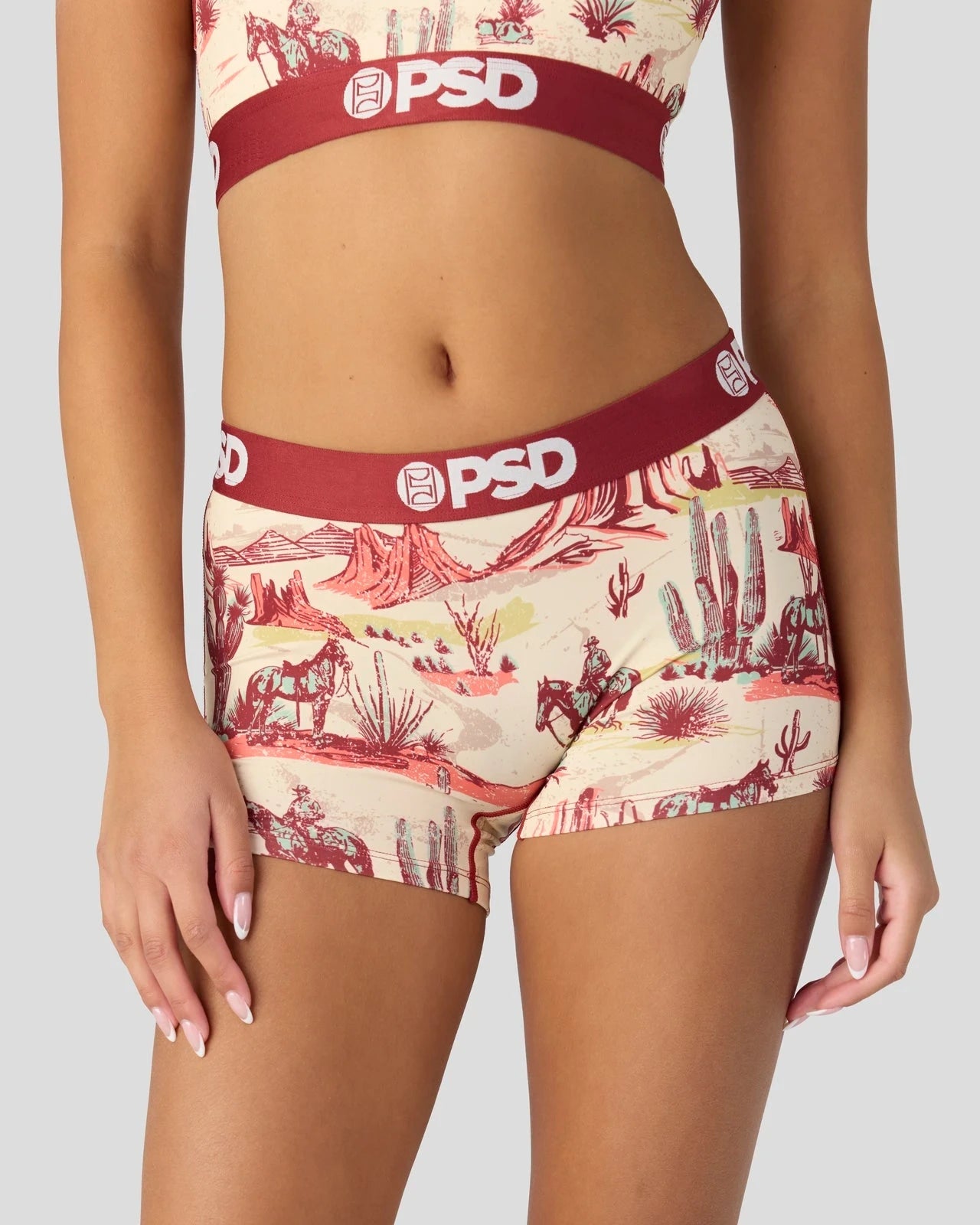 Put a little west in your wear with this new look. The Ranch Life Boy Short is made from a silky poly blend with a comfortable full coverage. keep-you-in fit. The PSD boy shorts are perfect for everyday wear and working out.