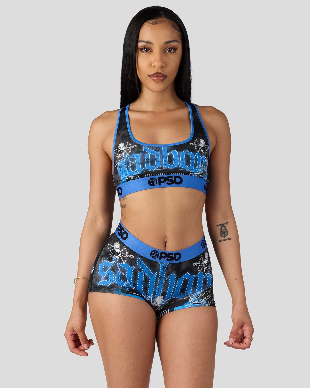 From Sad Boyz x PSD. the El Azul Angel Sports Bra is made from a silky poly blend and is breathable yet slightly compressive. bringing you the comfort and support you need for everything you get into.