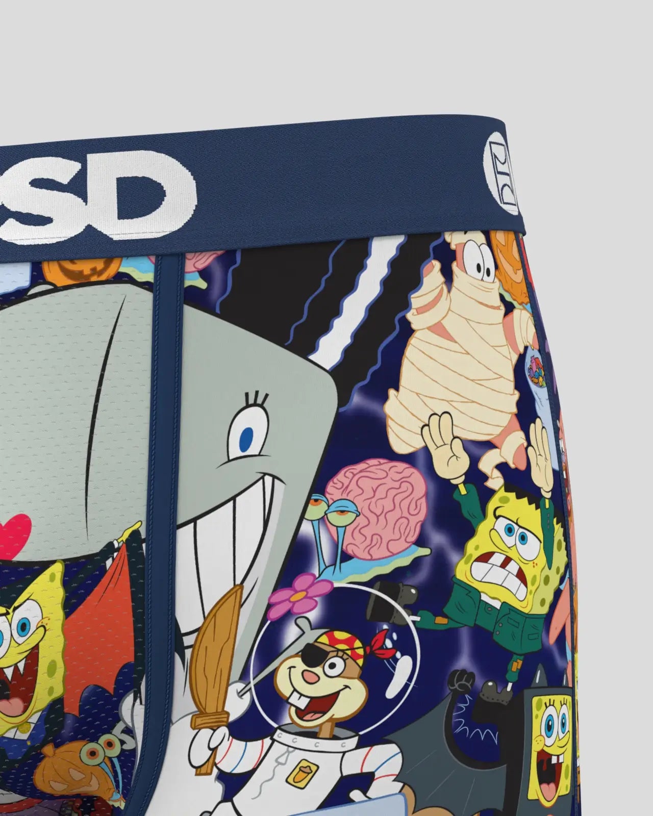 Things are getting spooky under the sea. This Halloween-ready style from SpongeBob SquarePants brings the whole crew together in full costume chaos. The SpongeBoo briefs include our ultra-comfortable Signature WaistBand. a breathable MicroMesh pouch. and four-way stretch. The PSD 7 Standard Length Briefs won’t roll or ride and were built for everything. from everyday wear to your toughest workouts.