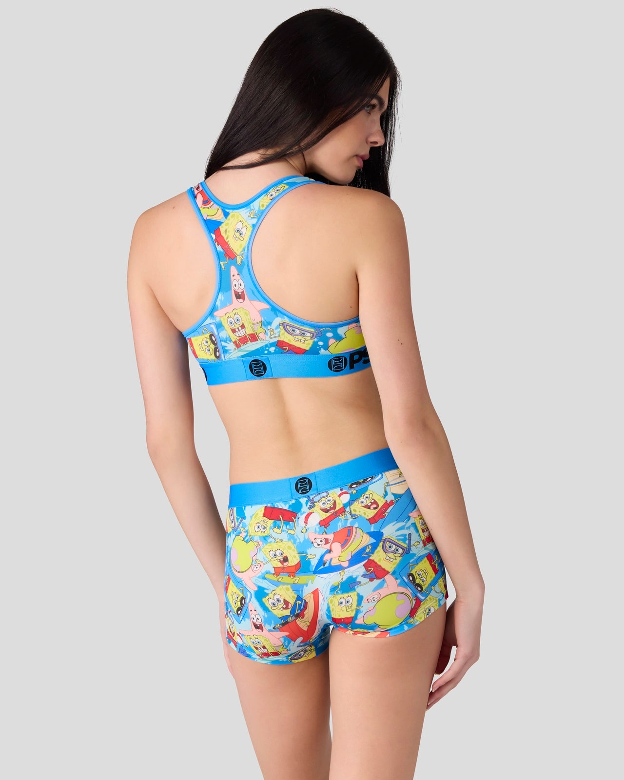 Surf’s up in this new look from SpongeBob SquarePants x PSD! The Surfin’ Boy Short is made from a silky poly blend with a comfortable full coverage. keep-you-in fit. The PSD boy shorts are perfect for everyday wear and working out.