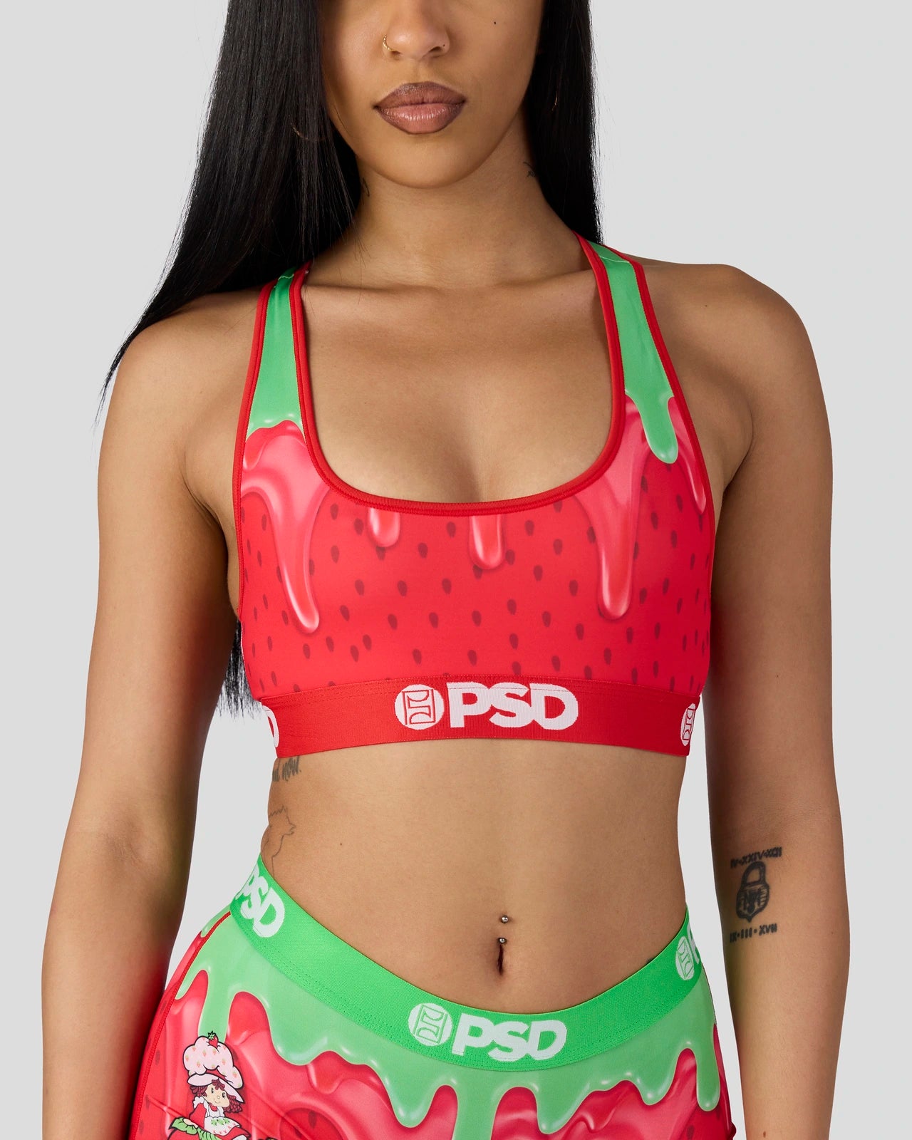 New from Strawberry Shortcake x PSD. the Strawberry Drip Sports Bra is made from a silky poly blend that’s breathable yet slightly compressive. bringing you the comfort and support you need for everything you get into.