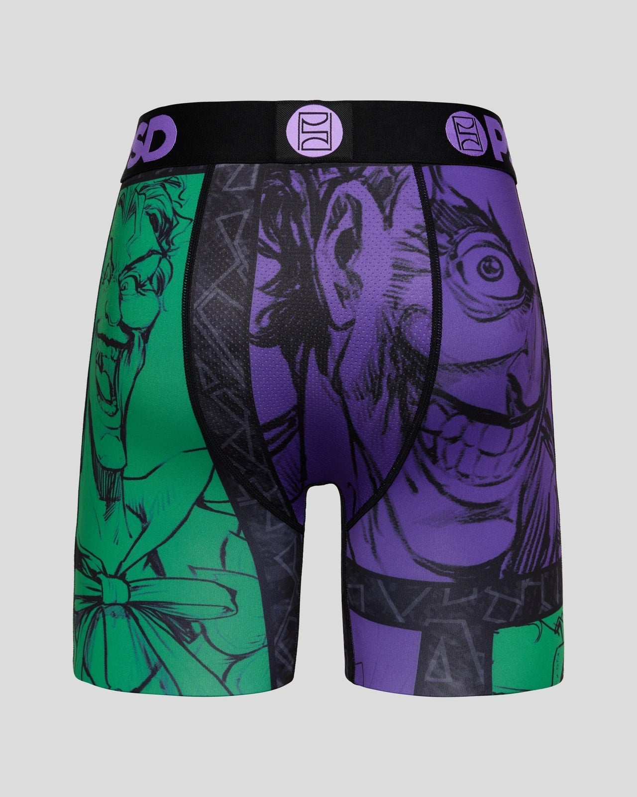 Get the newest look from the villain we all love to hate from The Joker x PSD collection. Featuring close-up illustrations of his maniacal face. the Split briefs include four-way stretch. a breathable MicroMesh pouch. and durable flatlock stitching. The PSD 7 Standard Length briefs were built to hold up for everything from everyday wear to the toughest workouts.