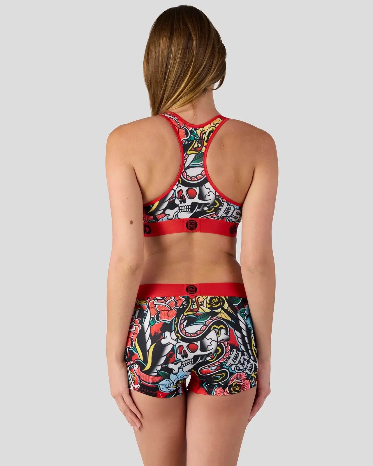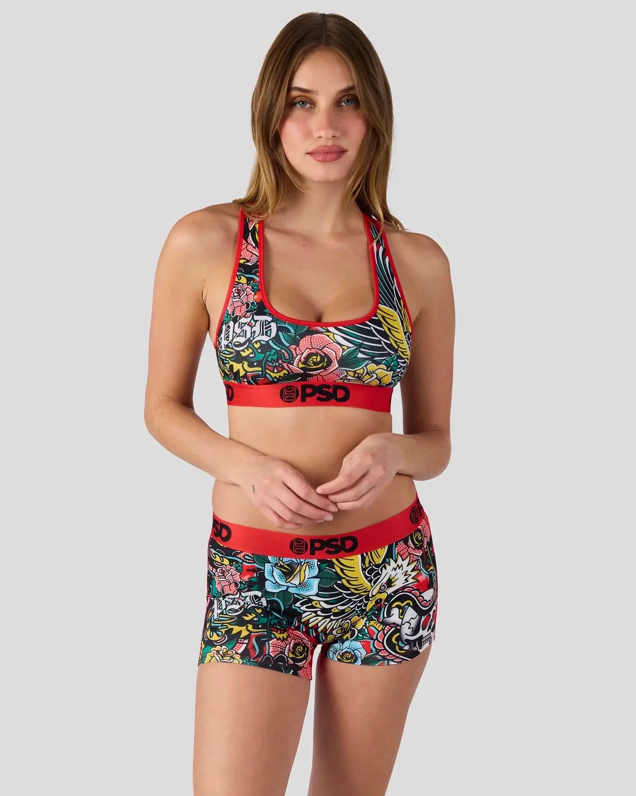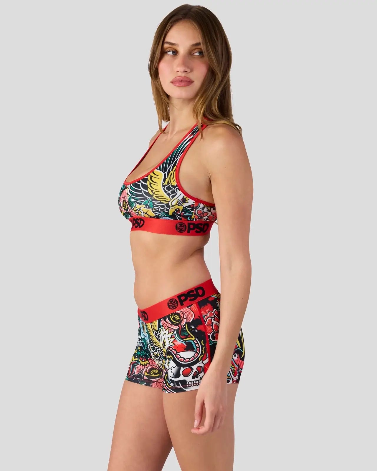 This fierce. tattoo-inspired look is channeling early-2000s edge. The Winged Spirit Sports Bra is made from a silky poly-blend that’s breathable yet slightly compressive. bringing you the comfort and support you need for everything you get into.