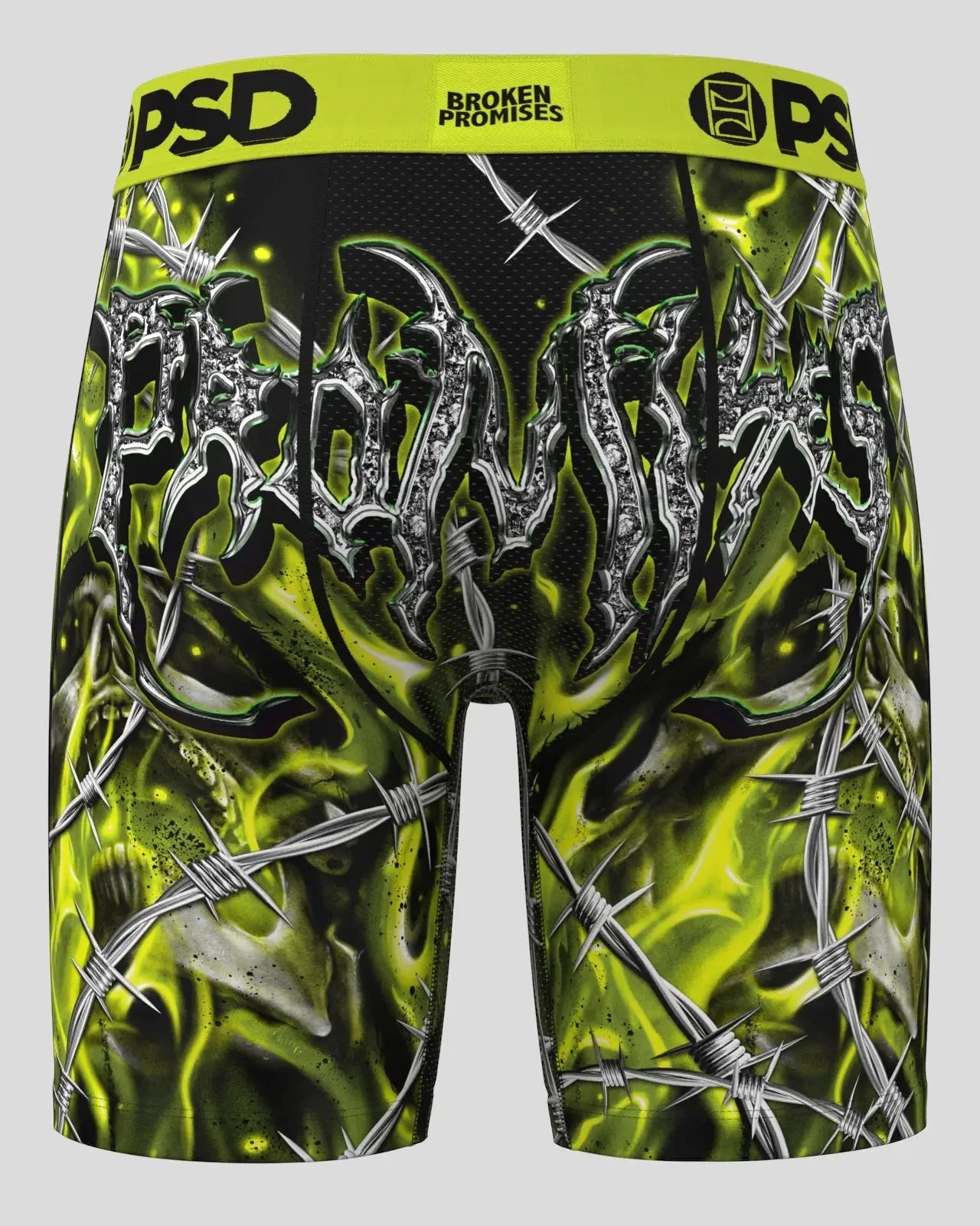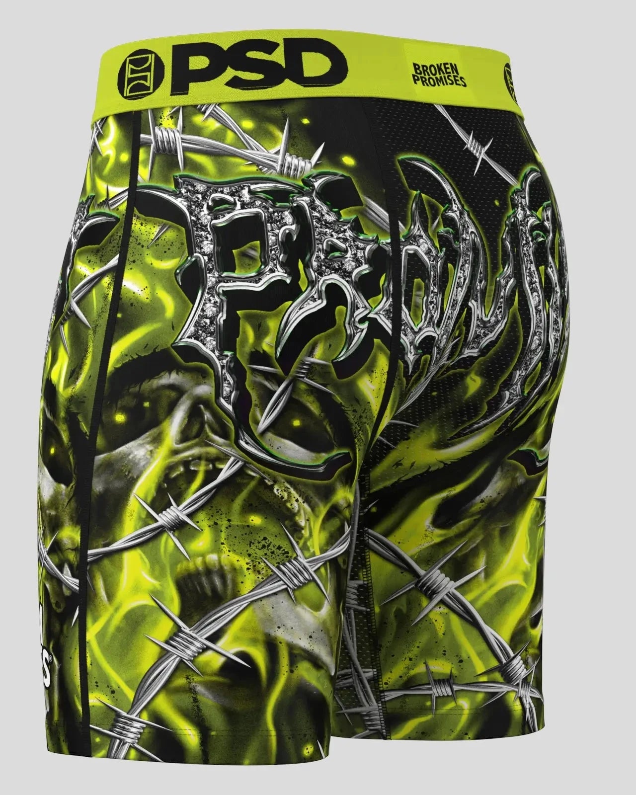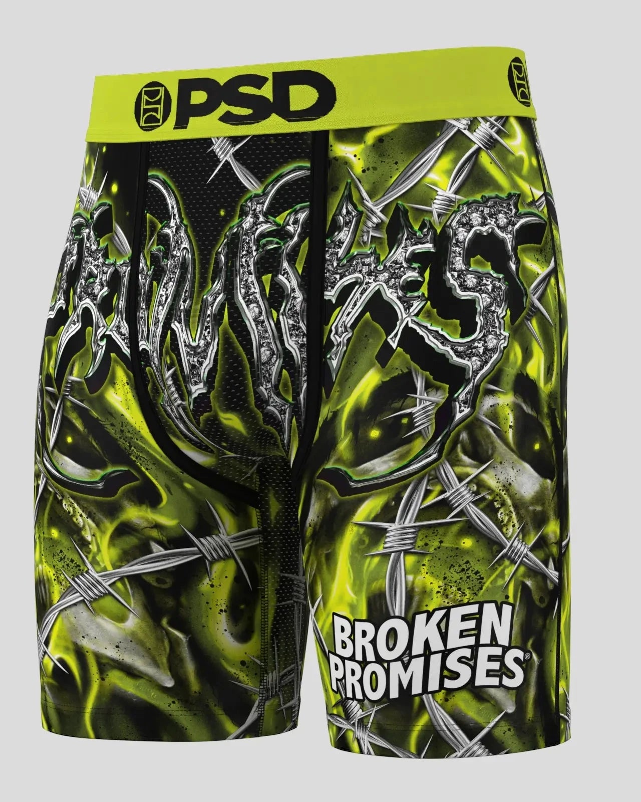 Our first collaboration with Broken Promises is here. Featuring their barbwire print. the Cyberwire briefs include our ultra-comfortable Signature WaistBand. a breathable MicroMesh pouch. and four-way stretch. The PSD 7 Standard Length Briefs won’t roll or ride and were built for everything. from everyday wear to your toughest workouts.