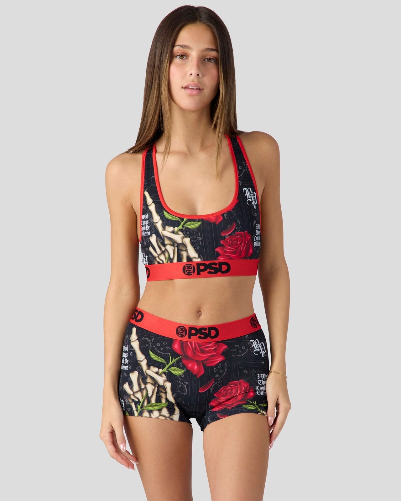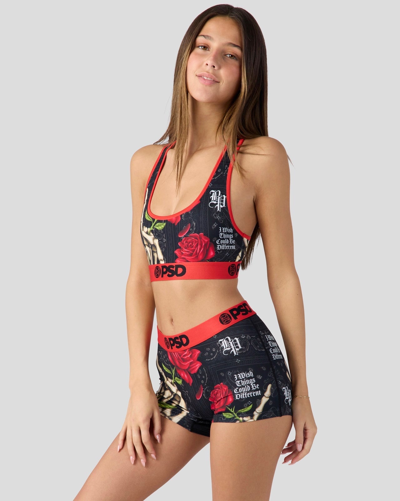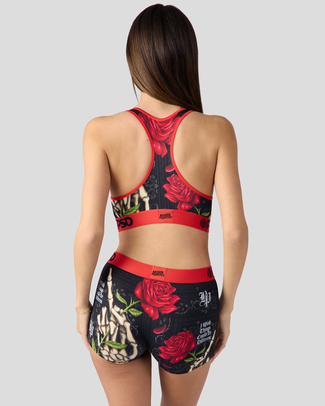 Our first collaboration with Broken Promises is here. Featuring a print inspired by their iconic graphics. the Wishful Thinking Sports Bra is made from a silky poly blend and is breathable yet slightly compressive. bringing you the comfort and support you need for everything you get into.