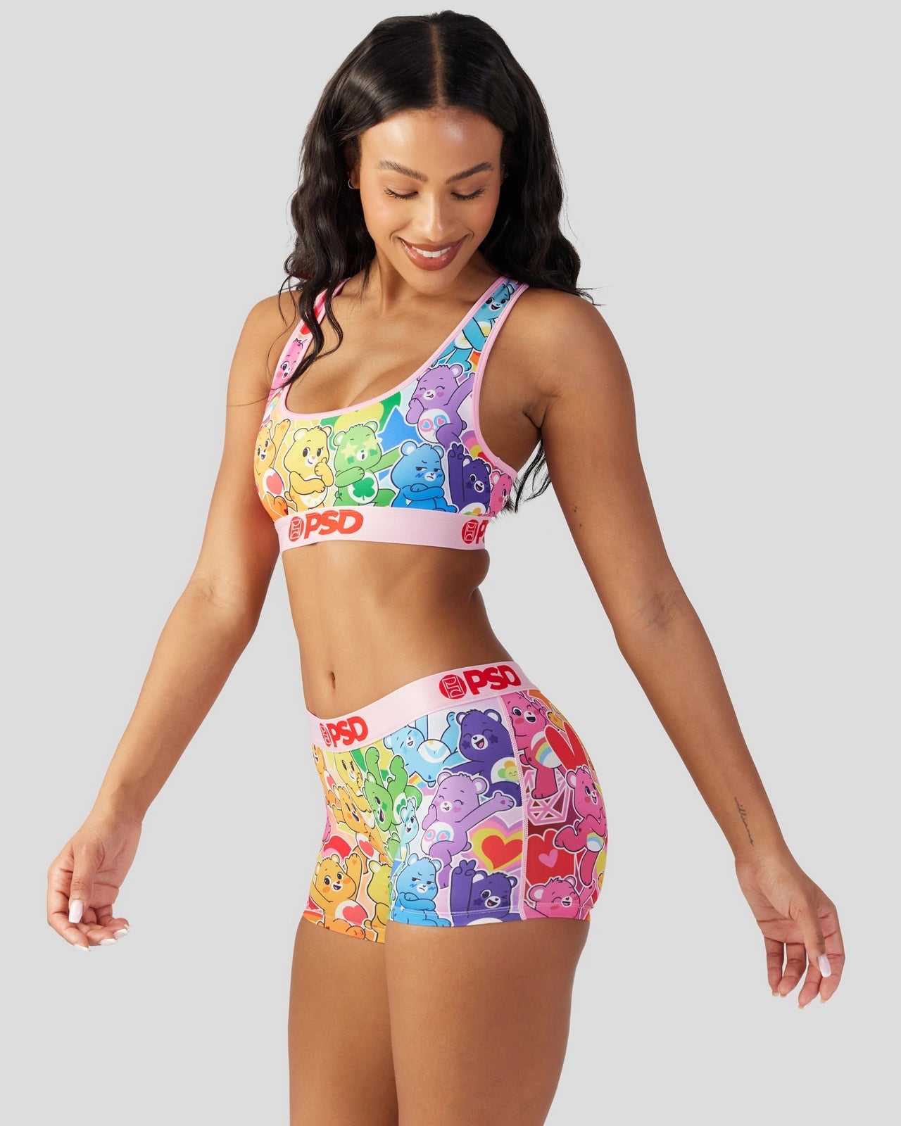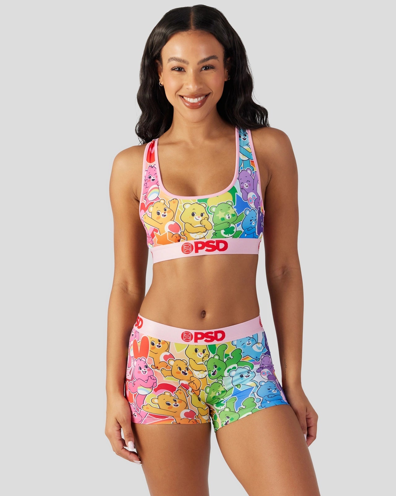 Don’t miss this colorful new drop from Care Bears x PSD. The Rainbow Sports Bra is made from a silky poly blend with a comfortable full coverage. keep-you-in fit.