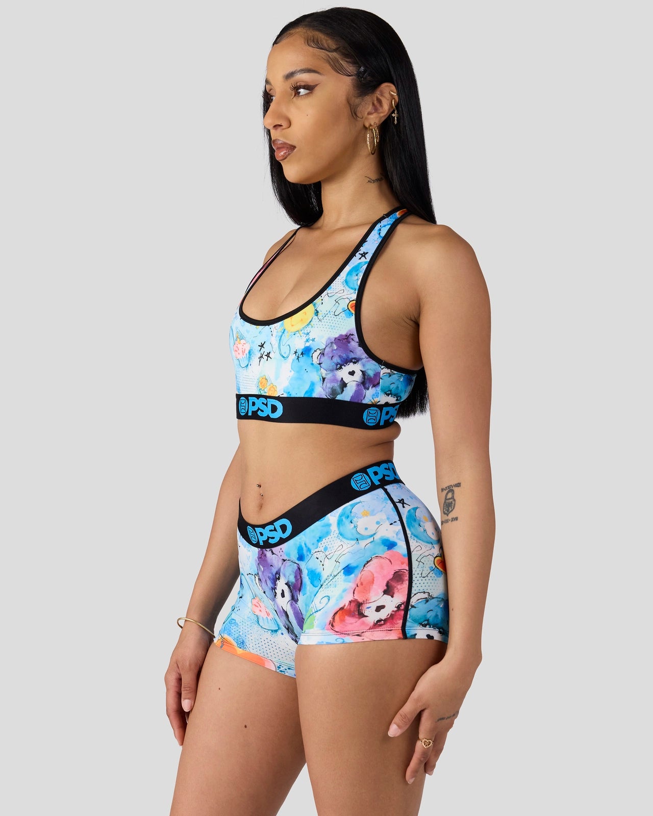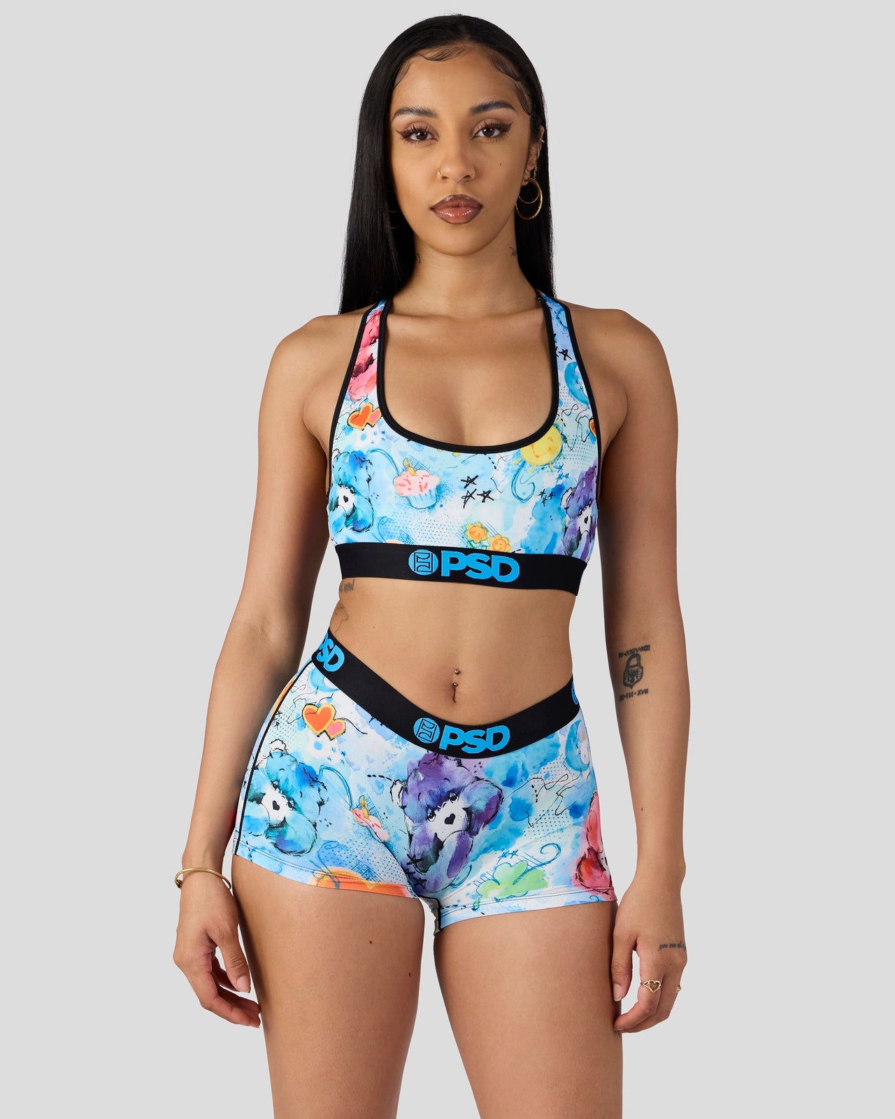 New from Care Bears x PSD. the Sketch Sports Bra is made from a silky poly blend that’s breathable yet slightly compressive. bringing you the comfort and support you need for everything you get into.