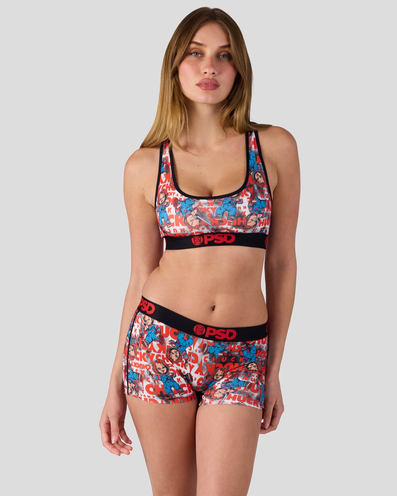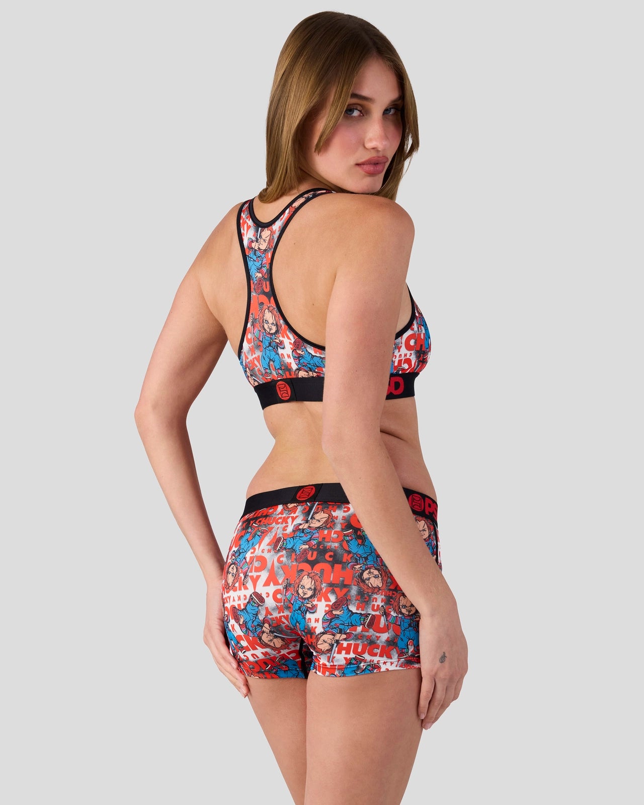 Straight from the toy box of nightmares. this Chucky x PSD look is ready to play. The Wanna Play Sports Bra is made from a silky poly blend that’s breathable yet slightly compressive. bringing you the comfort and support you need for everything you get into.