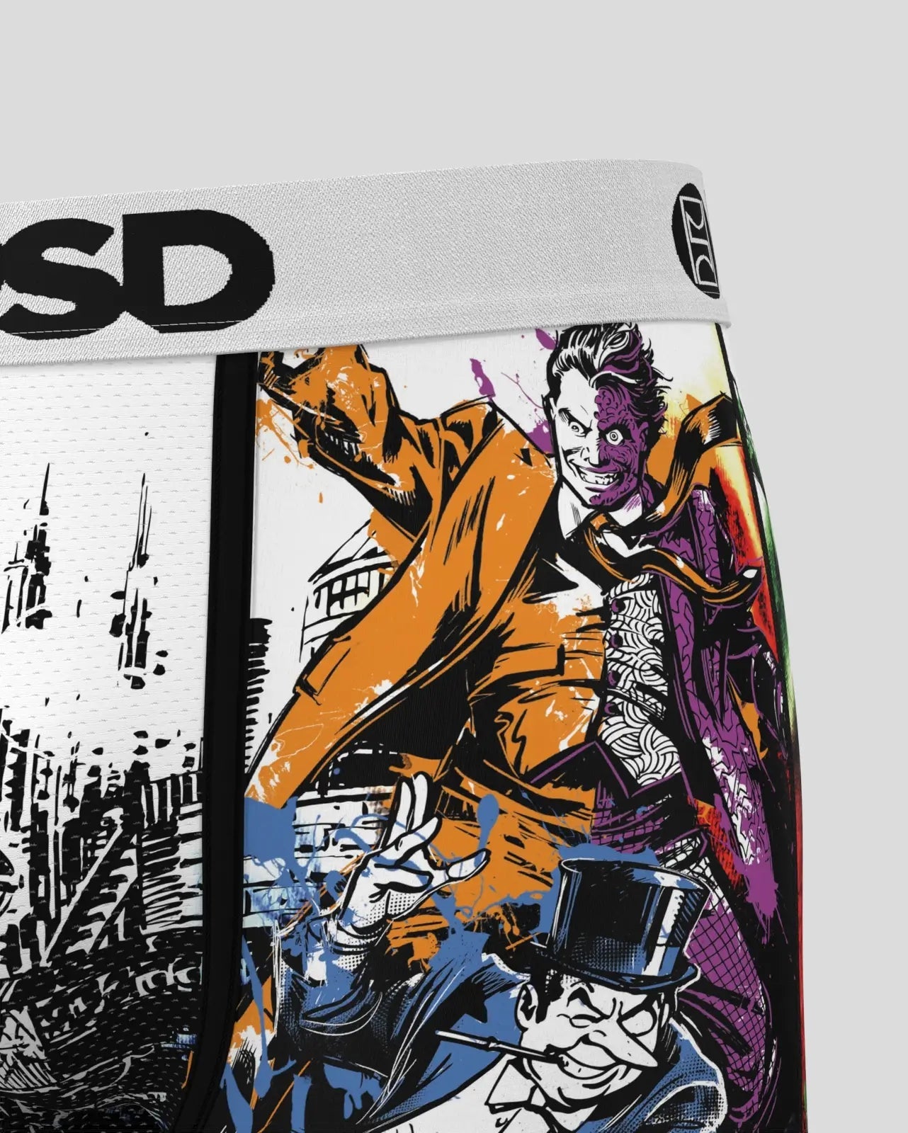 Don’t miss this drop from DC x PSD. The Gotham Villains briefs feature your favorite Batman bad guys in a straight-from-the-comics print and include our ultra-comfortable Signature WaistBand. a breathable MicroMesh pouch. and four-way stretch. The PSD 7 Standard Length Briefs won’t roll or ride and were built for everything. from everyday wear to your toughest workouts.