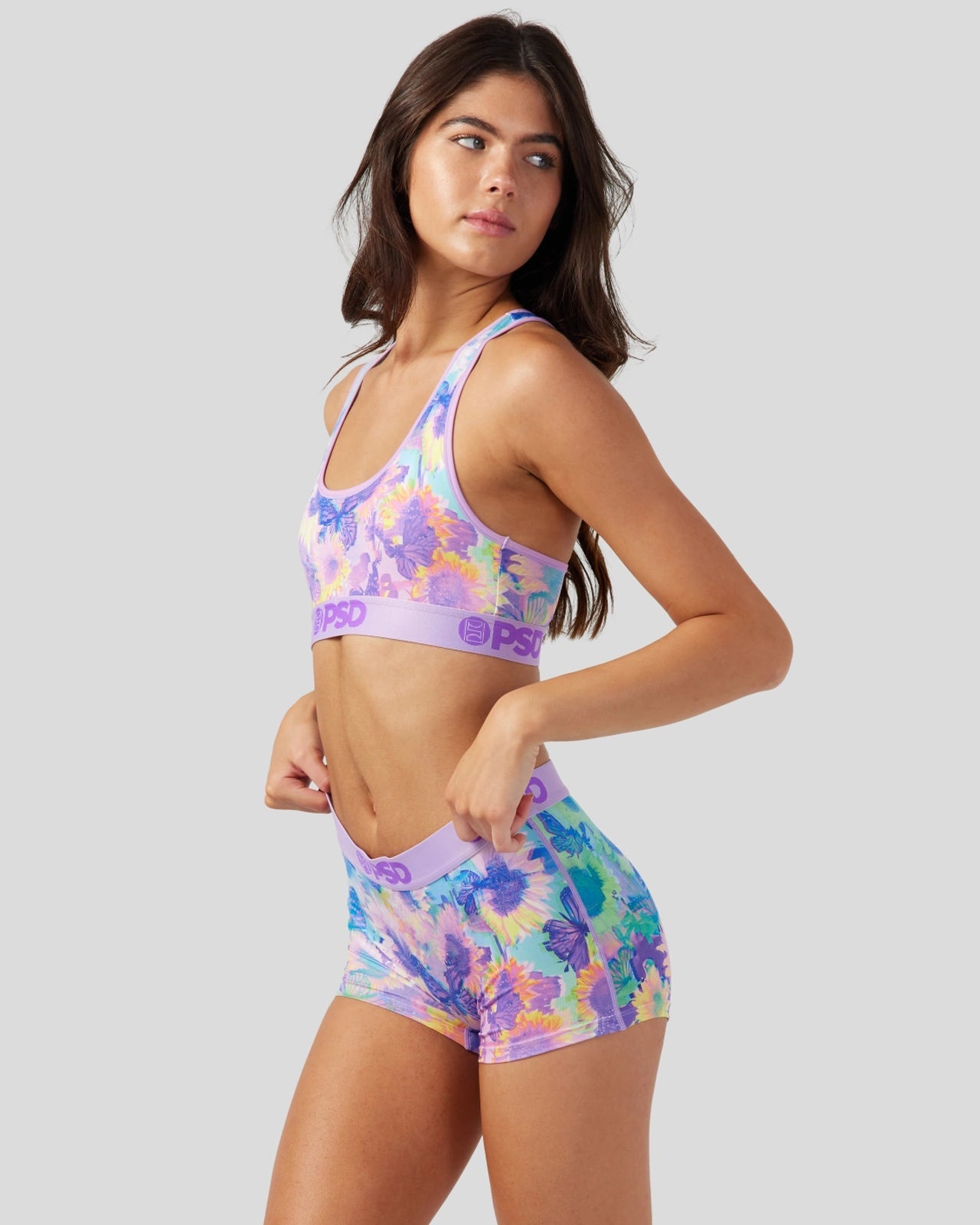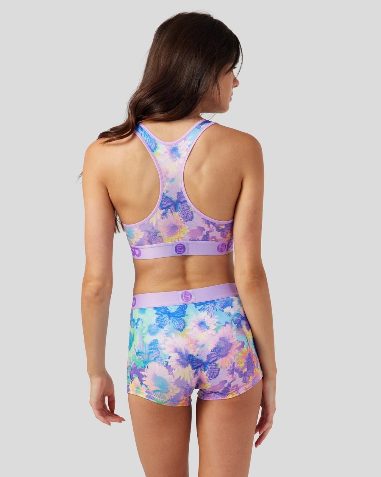 The Garden Glitch Sports Bra features a colorful pixelated floral print that’ll brighten up your bra collection. Made with our silky poly blend. this bra is breathable yet slightly compressive. bringing you the comfort and support you need for everything you get into. This style is available in sizes XS – 5XL.