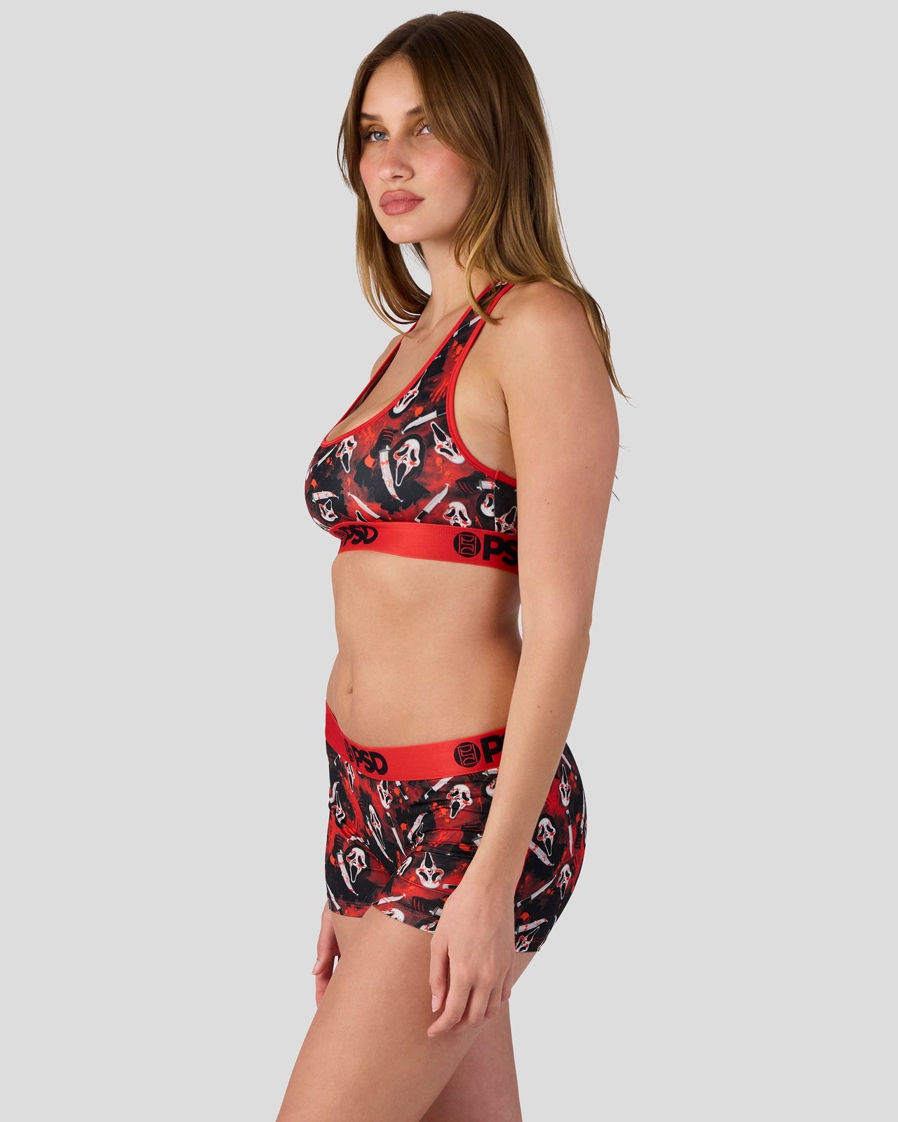 This new look from Ghost Face x PSD is killer. Slice into scary season with the Slasher Boy Short. made from a silky poly blend with a comfortable full-coverage. keep-you-in fit. The PSD boy shorts are perfect for everyday wear and working out.