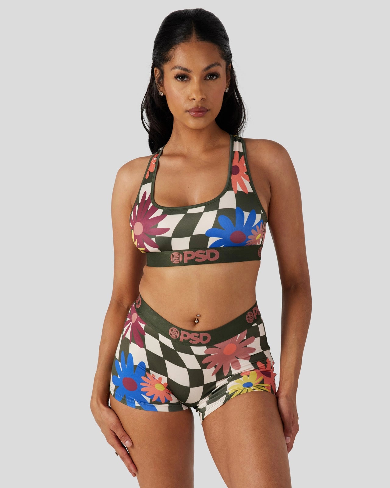 With a floral and on-trend checkered print. this bra is the perfect girly addition to your intimates drawer. The Women’s Girly Pop Sports Bra is made from a silky poly blend and is breathable yet slightly compressive. bringing you the comfort and support you need for everything you get into.