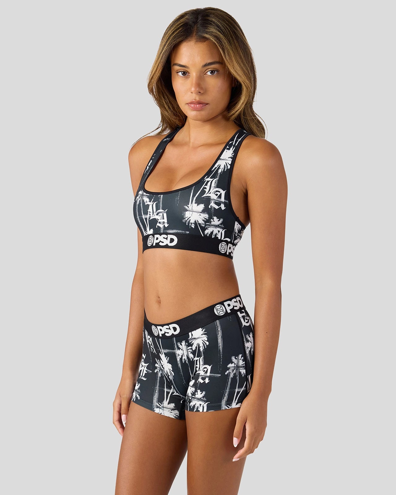 Classic West Coast vibes. ready for everyday wear. The LA Palms Sports Bra is made from a silky poly blend that’s breathable yet slightly compressive. bringing you the comfort and support you need for everything you get into.