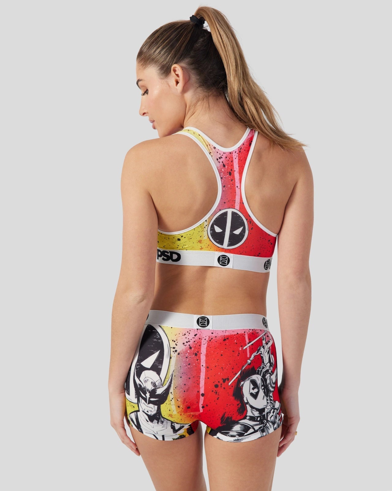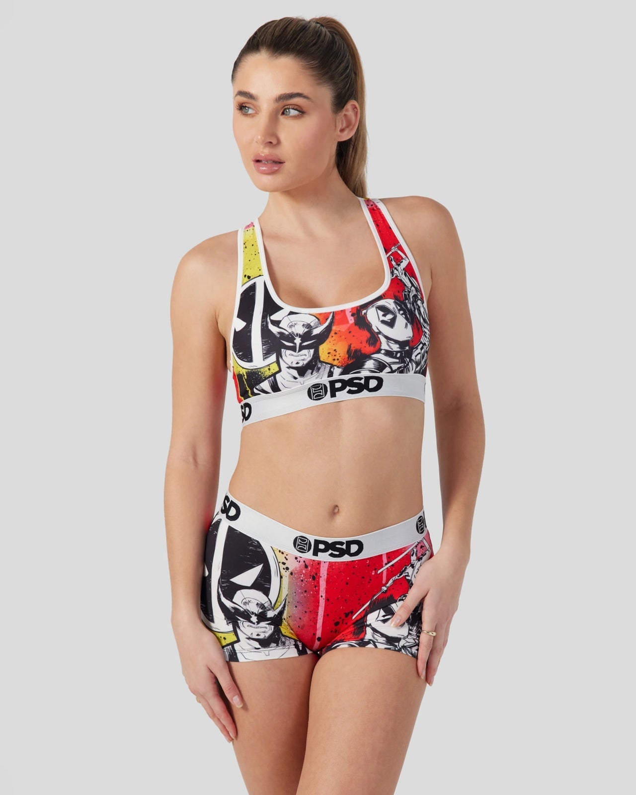 New from Deadpool & Wolverine. Inspired by classic comics. the Holy Snikt! Boy Short is made from a silky poly blend with a comfortable full coverage. keep-you-in fit. The PSD boy shorts are perfect for everyday wear and working out.