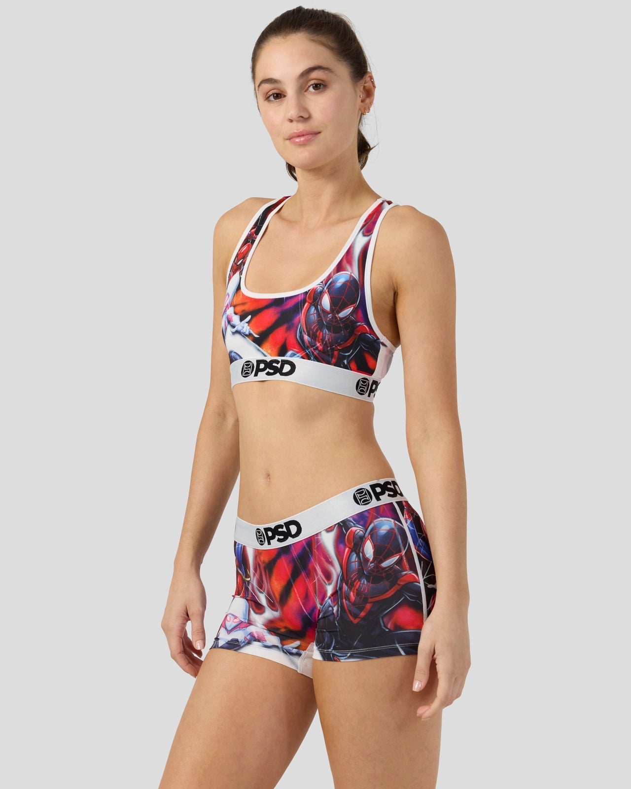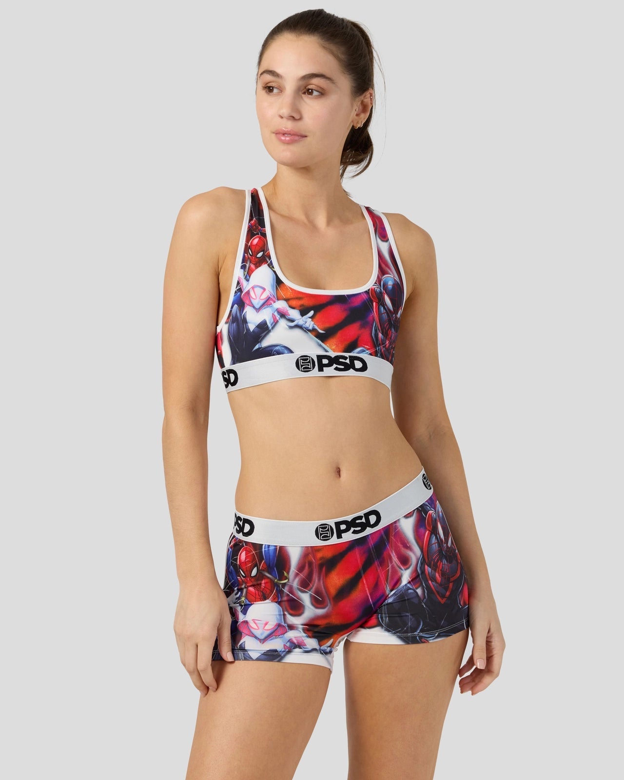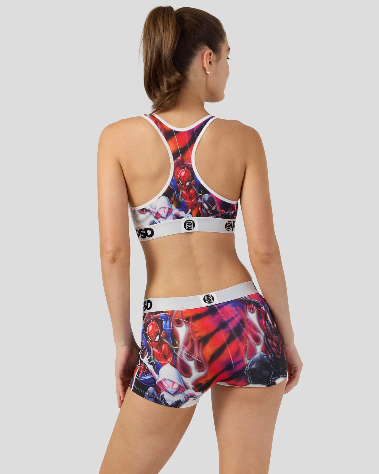 The whole Spidey crew came together for this new Marvel drop. The Spider-Man Triad Sports Bra is made from a silky poly blend and is breathable yet slightly compressive. bringing you the comfort and support you need for everything you get into.