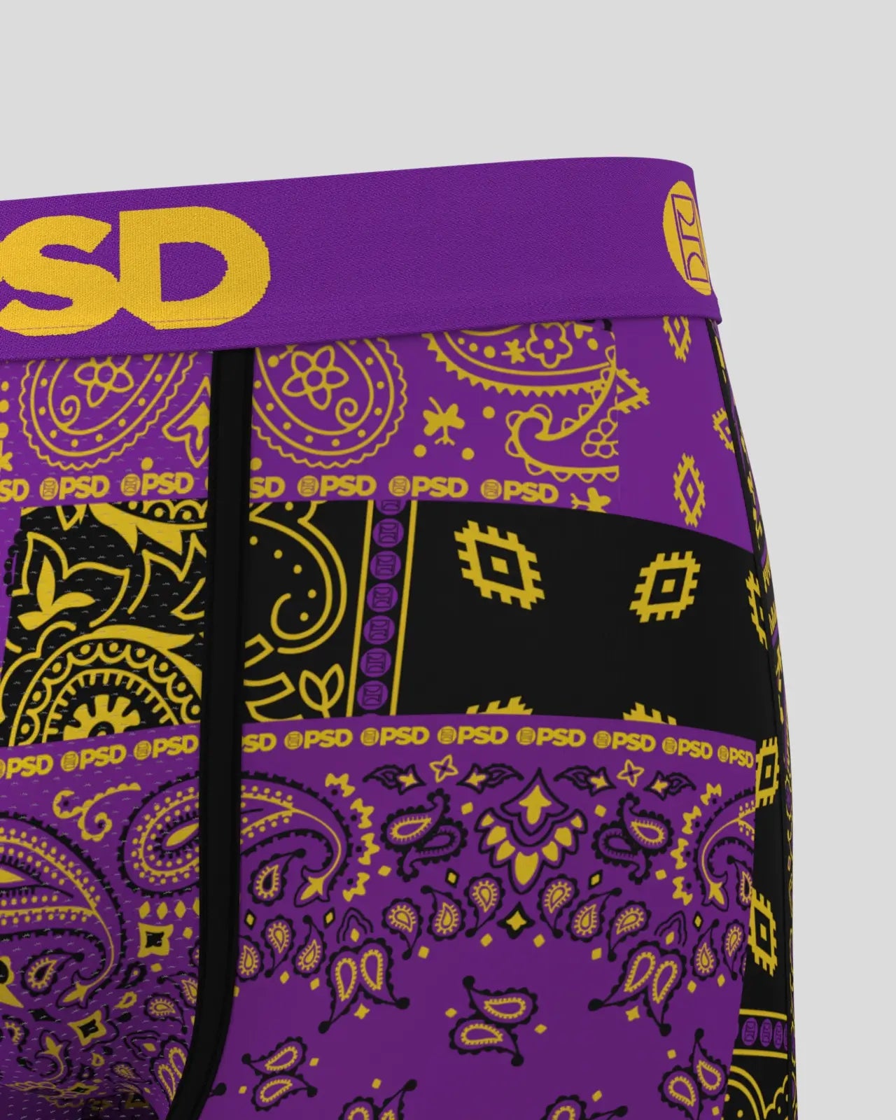 Bandana print. with a twist. The Purple Maze briefs include our ultra-comfortable Signature WaistBand. a breathable MicroMesh pouch. and four-way stretch. The PSD 7 Standard Length Briefs won’t roll or ride and were built for everything. from everyday wear to your toughest workouts.