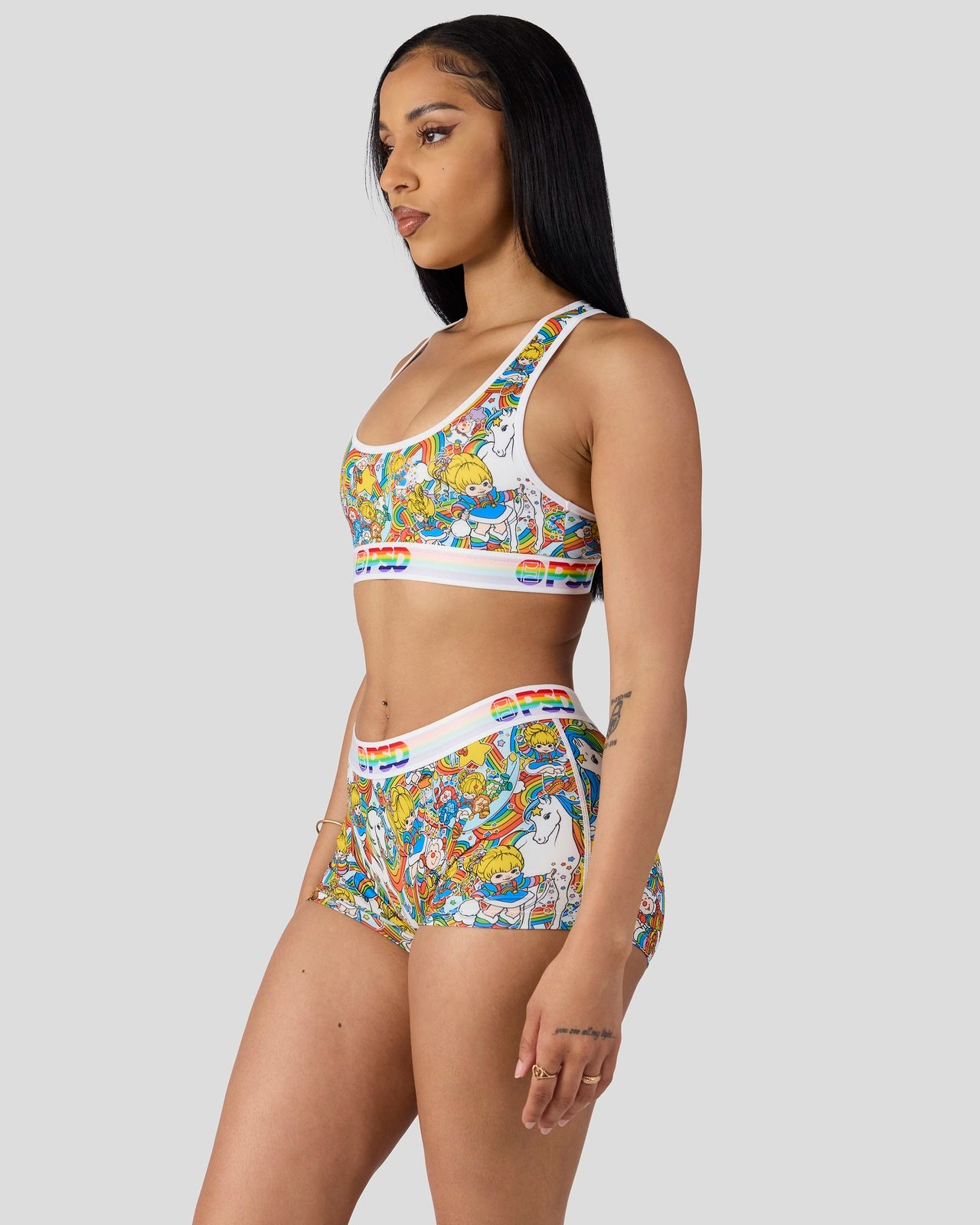 New from Rainbow Brite x PSD. the Rainbow Twist Boy Short is made from a silky poly blend with a comfortable full coverage. keep-you-in fit. The PSD boy shorts are perfect for everyday wear and working out.