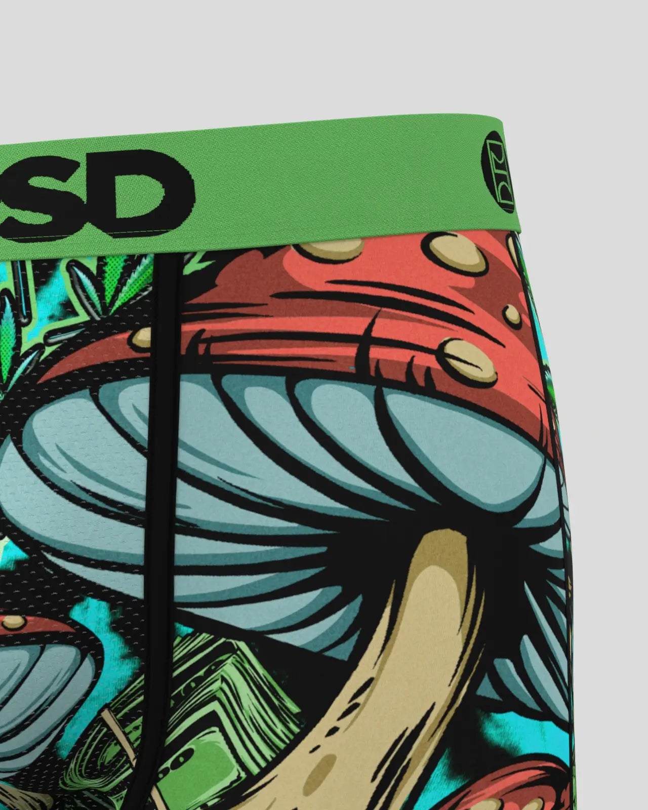 Take a trip in this new men’s pair. The Shroomies briefs include our ultra-comfortable Signature WaistBand. a breathable MicroMesh pouch. and four-way stretch. The PSD 7 Standard Length Briefs won’t roll or ride and were built for everything. from everyday wear to your toughest workouts.