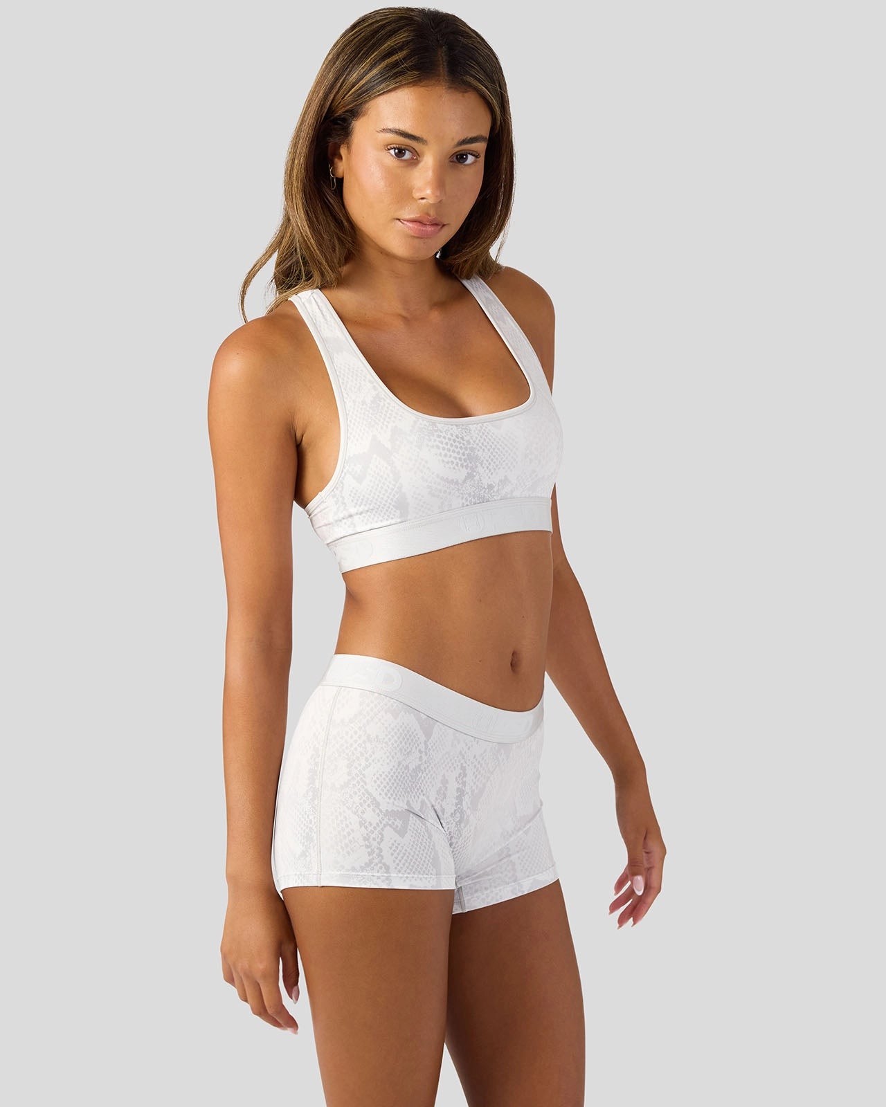 Take a walk on the wild side and slither into this new pair. The Silver Snake Boy Short is made from a silky poly blend with a comfortable full-coverage. keep-you-in fit. The PSD boy shorts are perfect for everyday wear and working out.