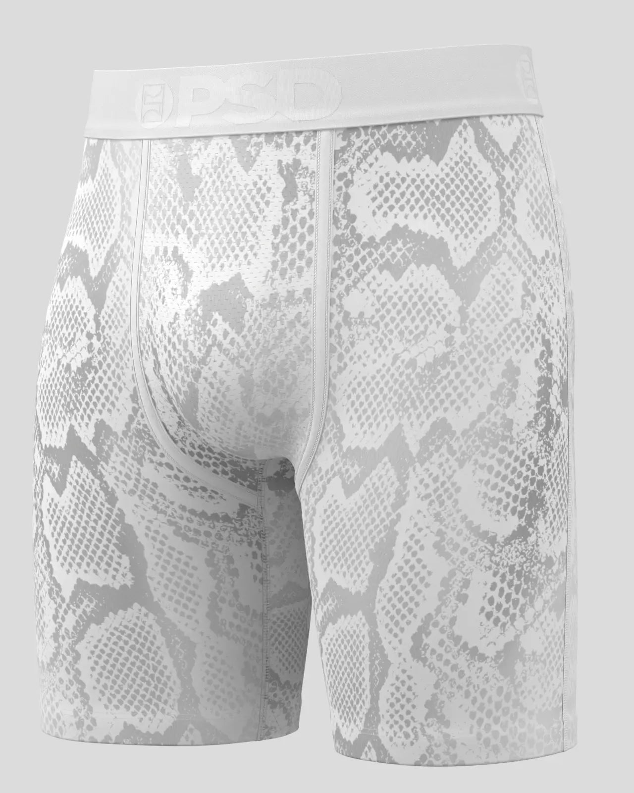 Take a walk on the wild side and slither into this new pair. The Silver Snake briefs include our ultra-comfortable Signature WaistBand. a breathable MicroMesh pouch. and four-way stretch. The PSD 7 Standard Length Briefs won’t roll or ride and were built for everything. from everyday wear to your toughest workouts.